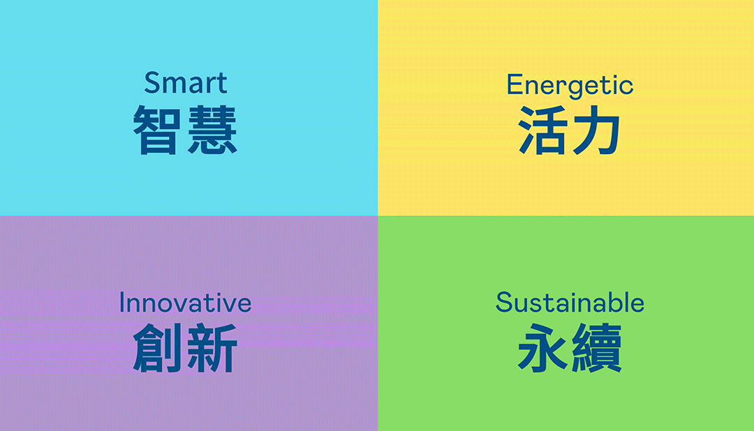 从稳重、信赖的5001拉斯维加斯蓝开创新色彩,注入象征智慧蓝、活力黄、创新紫、永续绿的品牌色及动态多变的几何图形,呼应不设限的「Possibilities」精神,代表多元的专业技术及领域,在碰撞中相互触动、融合、延伸,持续激荡出更多新的可能性。